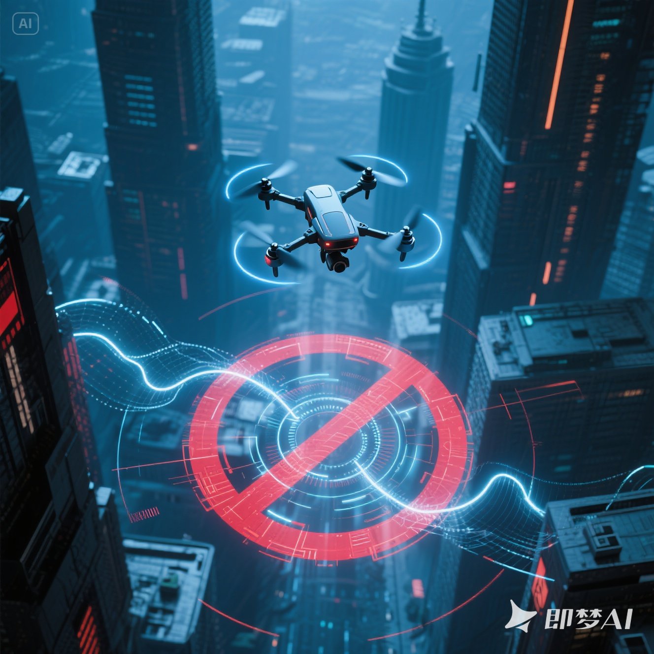 التشويش الإلكتروني: وهو تكتيك القتل الناعم، من خلال إرسال إشارات تشويش كهرومغناطيسية ذات تردد محدد، فهو يقطع رابط الاتصال بين الطائرة بدون طيار ومحطة التحكم الأرضية، مما يجعلها غير قادرة على تلقي الأوامر أو نقل البيانات، وبالتالي إجبار الطائرة بدون طيار على التحليق أو العودة إلى مسار الطيران أو السقوط. تتمتع معدات التشويش الإلكترونية عادة بمزايا مجموعة واسعة من التأثيرات وسرعة الاستجابة السريعة، ولكنها قد تسبب بعض التداخل مع المعدات الإلكترونية وأنظمة الاتصالات الأخرى في الحي.